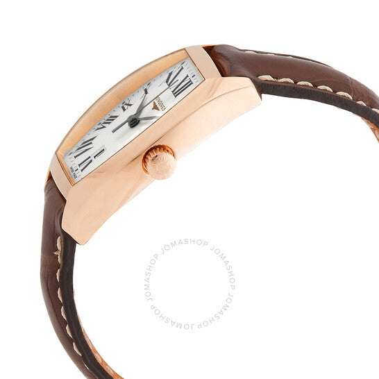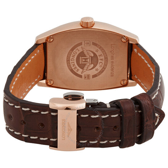 علبة من الذهب الوردي عيار 18 قيراطًا، بسوار من جلد التمساح البني. إطار ثابت من الذهب الوردي عيار 18 قيراطًا. ميناء فضي اللون مع عقارب سوداء وعلامات ساعات رومانية. علامات دقائق حول الحافة الخارجية. نوع الميناء: تناظري. عرض التاريخ عند موضع الساعة السادسة. حركة كوارتز من لونجين كاليبر L152. زجاج ياقوتي مقاوم للخدش. هيكل على شكل برميل، أبعاده: 30.6 مم × 26 مم، سُمكه: 8.1 مم. مقاومة للماء حتى عمق 30 مترًا / 100 قدم. الوظائف: التاريخ، الساعة، الدقيقة، الثانية. معلومات إضافية: العلبة الأصلية، بطاقة الضمان الدولية، دليل الاستخدام (ملحقات كاملة). سلسلة إيفيدينزا. تصميم ساعة فاخرة. ملصق الساعة: صناعة سويسرية. ساعة لونجين إيفيدينزا كوارتز نسائية بمينا فضي، L2.155.8.71.4.
