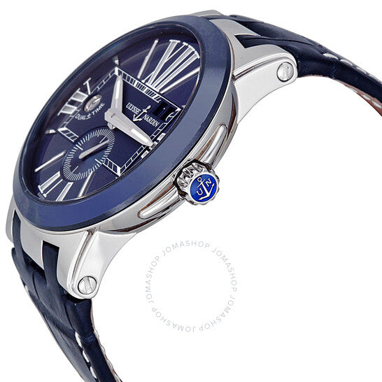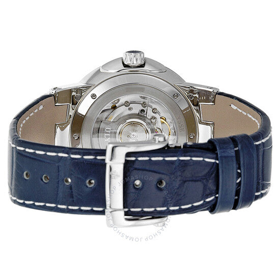 علبة من الفولاذ المقاوم للصدأ مع حزام من جلد التمساح الأزرق. إطار ثابت من السيراميك الأزرق. ميناء أزرق مع عقارب فضية اللون وعلامات ساعات لاصقة. أرقام رومانية تُشير إلى مواقع الساعات 3 و6 و9 و12. علامات دقائق حول حلقة داخلية. نوع الميناء: تناظري. عقارب وعلامات مضيئة. يظهر عرض التاريخ عند موضع الساعة 2. يظهر عرض الوقت المزدوج عند موضع الساعة 9. حركة أوتوماتيكية مع احتياطي طاقة لمدة 42 ساعة. كريستال ياقوت مقاوم للخدش. تاج لولبي. ظهر هيكل عظمي. قطر العلبة: 43 مم. سمك العلبة: 12.6 مم. شكل دائري. مشبك قابل للطي مع مفتاح أمان. مقاومة للماء حتى عمق 100 متر / 330 قدمًا. الوظائف: التاريخ، منطقة زمنية ثانية، الساعة، الدقيقة، الثانية. طراز ساعة فاخرة. علامة الساعة: صناعة سويسرية. ساعة أوليس ناردين إكزكيوتيف ثنائية التوقيت أوتوماتيكية للرجال بمينا زرقاء 243-00-43.