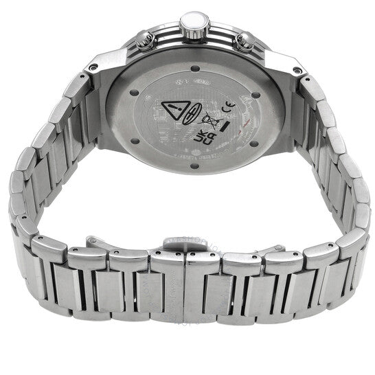 علبة وسوار من الفولاذ المقاوم للصدأ فضي اللون. إطار ثابت من الفولاذ المقاوم للصدأ فضي اللون. ميناء فضي أبيض مع عقارب ومؤشرات ساعات ذهبية اللون. يظهر الرقم العربي عند موضع الساعة ١٢. علامات الدقائق حول الحافة الخارجية. نوع الميناء: تناظري. عقارب ومؤشرات مضيئة. عرض التاريخ عند موضع الساعة ٤. كرونوغراف - ثلاثة موانئ فرعية تعرض: ٦٠ ثانية، ٣٠ دقيقة، و١٢ ساعة. آلية حركة كوارتز. زجاج ياقوت مقاوم للخدش. تاج قابل للسحب/الدفع. غطاء خلفي صلب. شكل دائري، حجم العلبة: ٤٢ مم. مشبك قابل للطي. مقاومة للماء حتى عمق ٥٠ مترًا / ١٦٥ قدمًا. الوظائف: كرونوغراف، تاريخ، ساعة، دقيقة، ثانية. سلسلة F-80. طراز ساعة رياضية. علامة الساعة: صناعة سويسرية. ساعة فيراغامو F-80 كرونوغراف كوارتز رجالية SFJE00324.