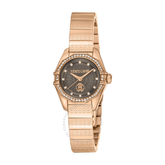 علبة وسوار من الفولاذ المقاوم للصدأ بلون الذهب الوردي. إطار ثابت من الفولاذ المقاوم للصدأ بلون الذهب الوردي. ميناء رمادي مع عقارب وعلامات ساعات ذهبية وردية اللون. علامات دقائق حول الحافة الخارجية. نوع الميناء: تناظري. حركة كوارتز. زجاج معدني مقاوم للخدش. علبة دائرية الشكل، مقاسها: ٢٦ مم. مشبك قابل للطي مع قفل أمان. مقاومة للماء حتى عمق ٥٠ مترًا / ١٦٥ قدمًا. الوظائف: الساعات، الدقائق، الثواني. سلسلة ساعات أنيقة. طراز ساعات أنيقة. ساعة روبرتو كافالي أنيقة كوارتز بمينا رمادي، ساعة نسائية RC5L054M0075.