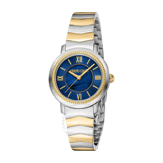 علبة من الفولاذ المقاوم للصدأ فضية اللون مع سوار من الفولاذ المقاوم للصدأ ثنائي اللون (فضي وذهبي أصفر). إطار ثابت من الفولاذ المقاوم للصدأ ذهبي أصفر. ميناء من عرق اللؤلؤ مع عقارب ومؤشرات ساعات ذهبية صفراء. نوع الميناء: تناظري. حركة كوارتز. زجاج معدني مقاوم للخدش. علبة دائرية الشكل، مقاسها: 30 مم. مشبك قابل للطي مع مفتاح أمان. مقاومة للماء حتى عمق 50 مترًا / 165 قدمًا. الوظائف: الساعات، الدقائق، الثواني. سلسلة ساعات أنيقة. طراز ساعات أنيقة. ساعة روبرتو كافالي كوارتز نسائية RC5L056M0095.