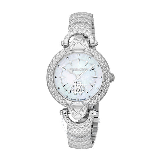 علبة وسوار من الفولاذ المقاوم للصدأ فضي اللون. إطار ثابت من الفولاذ المقاوم للصدأ فضي اللون. ميناء من عرق اللؤلؤ مع عقارب ومؤشرات ساعات فضية اللون. نوع الميناء: تناظري. حركة كوارتز. زجاج ياقوتي مقاوم للخدش. علبة دائرية الشكل، مقاسها: 32 مم. مشبك قابل للطي مع قفل أمان. مقاومة للماء حتى عمق 50 مترًا / 165 قدمًا. الوظائف: الساعات، الدقائق، الثواني. سلسلة ساعات أنيقة. طراز ساعات أنيقة. علامة الساعة: صناعة سويسرية. ساعة روبرتو كافالي أنيقة كوارتز نسائية RV1L165M0041.