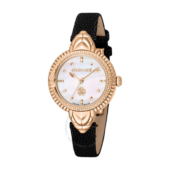 علبة من الفولاذ المقاوم للصدأ بلون الذهب الوردي مع سوار جلدي أسود. إطار ثابت من الفولاذ المقاوم للصدأ بلون الذهب الوردي. ميناء من عرق اللؤلؤ مع عقارب ومؤشرات ساعات بلون الذهب الوردي. نوع الميناء: تناظري. حركة كوارتز. زجاج ياقوتي مقاوم للخدش. علبة دائرية الشكل، مقاسها 32 مم. مقاومة للماء حتى عمق 50 مترًا / 165 قدمًا. وظائفها: الساعات، الدقائق، الثواني. سلسلة ساعات أنيقة. طراز ساعات أنيقة. علامة الساعة: صناعة سويسرية. ساعة روبرتو كافالي الأنيقة كوارتز نسائية RV1L203L0031.