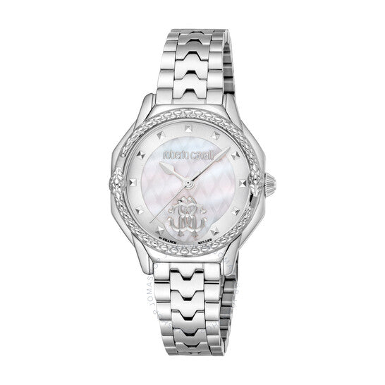علبة وسوار من الفولاذ المقاوم للصدأ فضي اللون. إطار ثابت من الفولاذ المقاوم للصدأ فضي اللون. ميناء من عرق اللؤلؤ مع عقارب ومؤشرات ساعات فضية اللون. نوع الميناء: تناظري. حركة كوارتز. زجاج ياقوتي مقاوم للخدش. علبة دائرية الشكل، مقاسها: 32 مم. مشبك قابل للطي مع قفل أمان. مقاومة للماء حتى عمق 50 مترًا / 165 قدمًا. الوظائف: الساعات، الدقائق، الثواني. سلسلة ساعات أنيقة. طراز ساعات أنيقة. علامة الساعة: صناعة سويسرية. ساعة روبرتو كافالي أنيقة كوارتز نسائية RV1L225M0041.