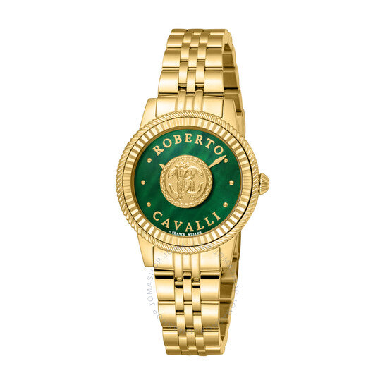 علبة وسوار من الفولاذ المقاوم للصدأ بلون الذهب الأصفر. إطار ثابت من الفولاذ المقاوم للصدأ بلون الذهب الأصفر. ميناء من عرق اللؤلؤ مع عقارب ومؤشرات ساعات بلون الذهب الأصفر. نوع الميناء: تناظري. حركة كوارتز. زجاج ياقوتي مقاوم للخدش. علبة دائرية الشكل، مقاسها: 30 مم. مشبك قابل للطي مع قفل أمان. مقاومة للماء حتى عمق 50 مترًا / 165 قدمًا. الوظائف: الساعات، الدقائق. سلسلة ساعات أنيقة. طراز ساعات أنيقة. علامة الساعة: صناعة سويسرية. ساعة روبرتو كافالي أنيقة كوارتز نسائية RV1L228M0061.