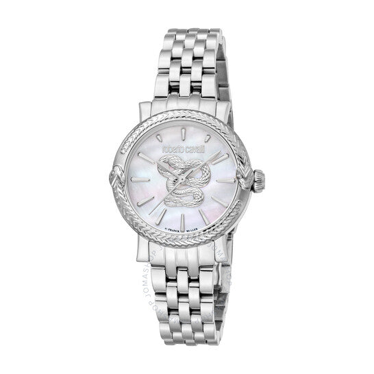 علبة وسوار من الفولاذ المقاوم للصدأ فضي اللون. إطار ثابت من الفولاذ المقاوم للصدأ فضي اللون. ميناء من عرق اللؤلؤ مع عقارب ومؤشرات ساعات فضية اللون. نوع الميناء: تناظري. حركة كوارتز. زجاج ياقوتي مقاوم للخدش. علبة دائرية الشكل، مقاسها: 30 مم. مشبك قابل للطي مع قفل أمان. مقاومة للماء حتى عمق 50 مترًا / 165 قدمًا. الوظائف: الساعات، الدقائق، الثواني. سلسلة ساعات أنيقة. طراز ساعات أنيقة. علامة الساعة: صناعة سويسرية. ساعة روبرتو كافالي أنيقة كوارتز نسائية RV1L231M0011.