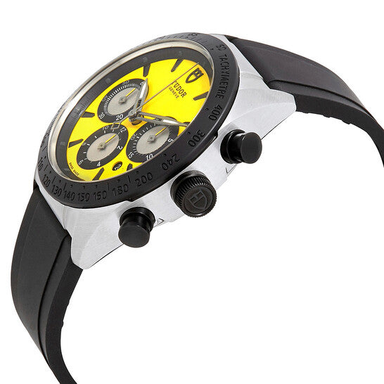 علبة من الفولاذ المقاوم للصدأ مع سوار مطاطي أسود. إطار ثابت من السيراميك الأسود يعرض علامات التاكيميتر. ميناء أصفر بعقارب مضيئة وعلامات ساعات مؤشرية. علامات دقائق حول الحافة الخارجية. نوع الميناء: تناظري. عقارب مضيئة. عرض التاريخ بين موضعي الساعة الرابعة والخامسة. كرونوغراف - ثلاثة موانئ فرعية بيضاء تعرض: ٦٠ ثانية، ٣٠ دقيقة، و١٢ ساعة. حركة أوتوماتيكية من عيار ٧٧٥٣ مع احتياطي طاقة ٤٦ ساعة. كريستال ياقوت مقاوم للخدش. تاج لولبي. غطاء خلفي صلب. شكل دائري. حجم الهيكل: ٤٢ مم. سمك الهيكل: ١٥ مم. عرض السوار: ٢٠ مم. مشبك قابل للطي بزر ضغط. مقاومة للماء حتى عمق ١٥٠ مترًا / ٥٠٠ قدم. الوظائف: كرونوغراف، تاكيميتر، تاريخ، ساعة، دقيقة، ثانية. سلسلة فاسترايدر بلاك شيلد. تصميم ساعة فاخر. ملصق الساعة: صناعة سويسرية. ساعة تيودور فاسترايدر بلاك شيلد كرونوغراف أوتوماتيكية للرجال 42010N-0007.