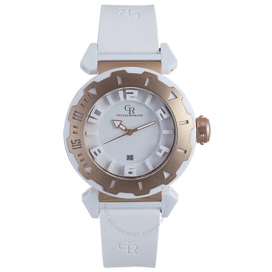 علبة بلاستيكية بيضاء مع سوار مطاطي أبيض. إطار أحادي الاتجاه من الفولاذ المقاوم للصدأ مطلي بالذهب الوردي بتقنية PVD. ميناء أبيض بعقارب ذهبية وردية اللون وعلامات ساعات عربية ومؤشرية. نوع الميناء: تناظري. عقارب مضيئة. عرض التاريخ عند موضع الساعة السادسة. حركة كوارتز. زجاج معدني مقاوم للخدش. هيكل دائري، مقاسه: 46 مم، سُمكه: 13 مم. مشبك تانغ. مقاومة للماء حتى عمق 100 متر / 330 قدمًا. الوظائف: التاريخ، الساعة، الدقائق، الثواني. تصميم كاجوال. إصدارات الساعة: GR-5000-24-001 09 7، GR-5000-24-001-09-7، GR-5000-24-001/09/7، GR-5000-24-001097. ساعة جوليو رومانو فيرارا للرجال كوارتز بمينا أبيض GR-5000-24-001.09.7.