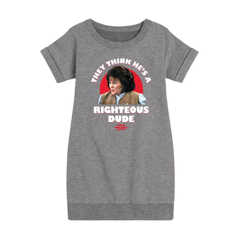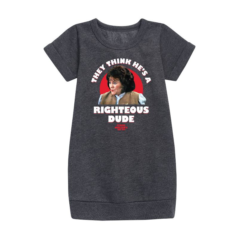 فستان فيريس بيولر داي أوف - رايتيوس دود - فستان صوف للفتيات الصغيرات والشابات - استمتعي بيوم العطلة مع ملابس فيريس بيولر داي أوف الجرافيكية. تتميز هذه التصاميم بشخصيات فيريس وكاميرون وسلون، وتجسد روح الانطلاق واللحظات المتمردة لهذا الفيلم الكلاسيكي الشهير للمراهقين.