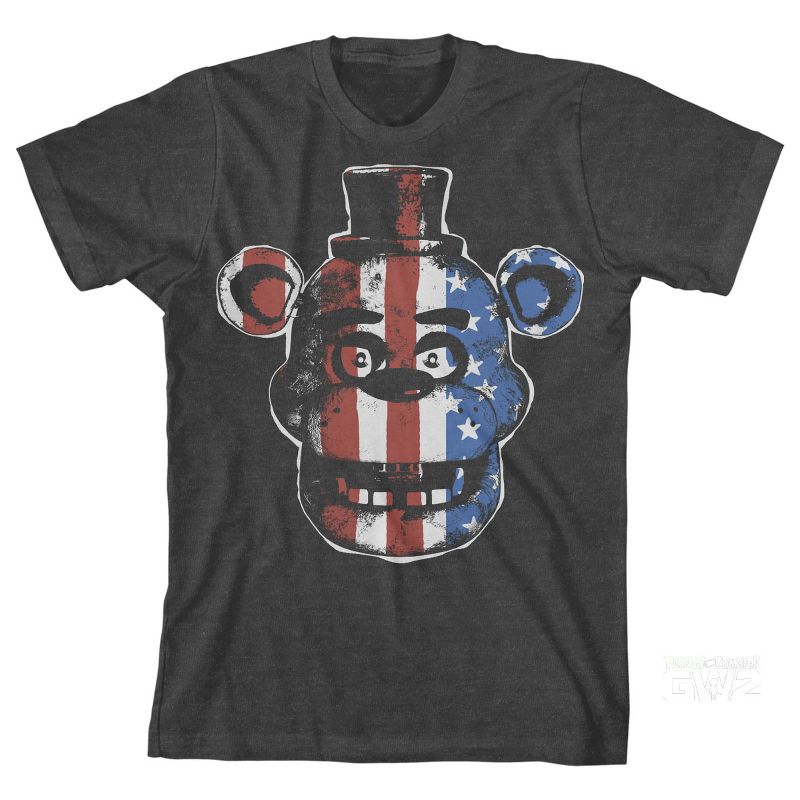 - تيشيرت برسومات جرافيكية: يرسم فريدي فازبير وجهه بالنجوم والخطوط احتفالاً بأمريكا على هذا التيشيرت الجرافيكي. سيحب الأولاد الانضمام إلى الشخصية المتحركة في العطلة بهذا التيشيرت الجرافيكي.