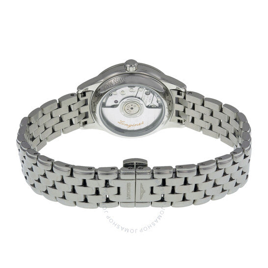 علبة من الفولاذ المقاوم للصدأ مع سوار من الفولاذ المقاوم للصدأ. إطار ثابت من الفولاذ المقاوم للصدأ. ميناء أسود مع عقارب ومؤشرات ساعات فضية مضيئة. مؤشرات دقائق حول الحافة الخارجية. نوع الميناء: تناظري. عقارب ومؤشرات مضيئة. عرض التاريخ عند موضع الساعة 3. حركة أوتوماتيكية من لونجين، عيار L595/592، مع احتياطي طاقة لمدة 42 ساعة. زجاج ياقوت مقاوم للخدش. تاج قابل للسحب/الدفع. غطاء خلفي هيكلي. شكل دائري. حجم العلبة: 26 مم. سمكها: 8 مم. عرض السوار: 12 مم. مشبك قابل للطي. مقاومة للماء حتى عمق 30 مترًا / 100 قدم. الوظائف: التاريخ، الساعة، الدقائق، الثواني. طراز ساعة رسمية. علامة الساعة: سويسرية. إصدارات الساعة: L4 274 4 52 6، L4-274-4-52-6، L4/274/4/52/6، L42744526. ساعة لونجين فلاجشيب أوتوماتيكية بمينا أسود للسيدات L42744526.