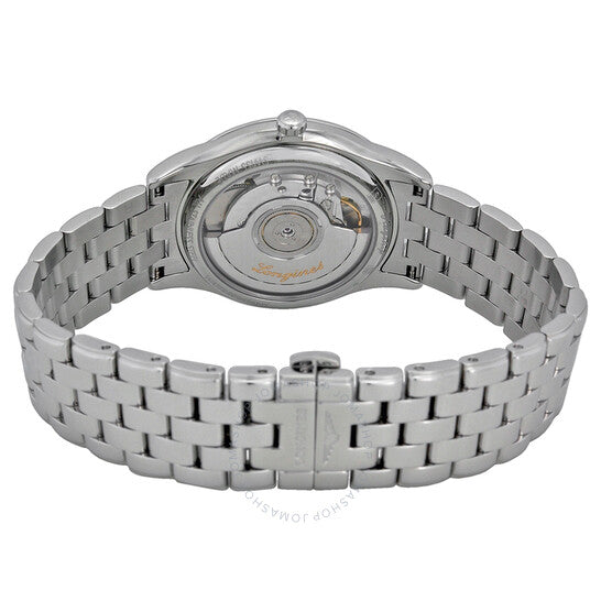 علبة من الفولاذ المقاوم للصدأ مع سوار من الفولاذ المقاوم للصدأ. إطار ثابت أملس من الفولاذ المقاوم للصدأ. ميناء أسود بعقارب فضية اللون على شكل سيف وعلامات ساعات من الألماس. نوع الميناء: تناظري. عرض التاريخ عند موضع الساعة الثالثة. حركة أوتوماتيكية من لونجين، عيار L619، مبنية على ETA 2892-A2، تحتوي على 21 جوهرة، تنبض بمعدل 28800 ذبذبة في الساعة، ولديها احتياطي طاقة يدوم حوالي 42 ساعة. زجاج من الياقوت المقاوم للخدش. تاج قابل للسحب/الدفع. ظهر هيكلي. شكل دائري. حجم العلبة: 36 مم. عرض السوار: 20.3 مم، طول السوار: 8 بوصات. مشبك طي مخفي. مقاومة للماء حتى عمق 30 مترًا / 100 قدم. الوظائف: التاريخ، الساعة، الدقائق، الثواني. سلسلة فلاجشيب. طراز ساعة رسمية. علامة الساعة: سويسرية. إصدارات المنتج: L4 774 4 57 6، L4-774-4-57-6، L4/774/4/57/6، L47744576. ساعة لونجين فلاجشيب أوتوماتيكية للرجال بمينا أسود، L4.774.4.57.6.