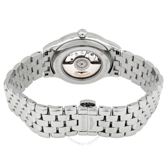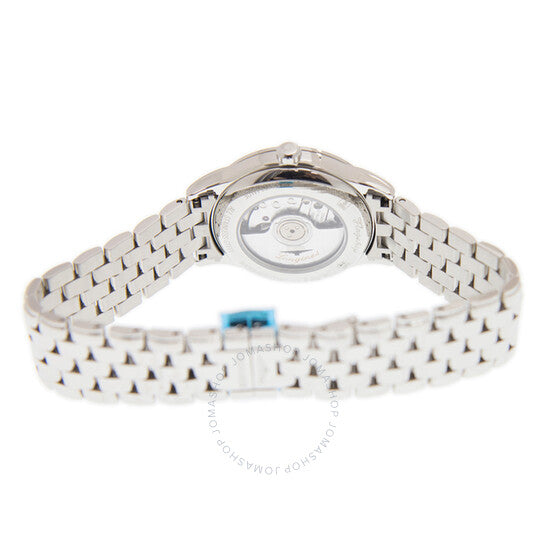 علبة من الفولاذ المقاوم للصدأ مع سوار من الفولاذ المقاوم للصدأ. إطار ثابت من الفولاذ المقاوم للصدأ. ميناء أزرق بعقارب فضية اللون على شكل سيف وعلامات ساعات. علامات دقائق حول الحافة الخارجية. نوع الميناء: تناظري. عرض التاريخ عند موضع الساعة الثالثة. حركة لونجين أوتوماتيكية من عيار L595/592، مبنية على ETA 2000-1، تحتوي على 20 جوهرة، تنبض بمعدل 28800 ذبذبة في الساعة، ولديها احتياطي طاقة لمدة 40 ساعة تقريبًا. زجاج من الياقوت المقاوم للخدش. تاج قابل للسحب/الدفع. غطاء خلفي شفاف. شكل دائري. حجم العلبة: 30 مم. سمكها: 8.72 مم. عرض السوار: 15 مم. مشبك فراشة. مقاومة للماء حتى عمق 30 مترًا / 100 قدم. الوظائف: التاريخ، الساعة، الدقيقة، الثانية. سلسلة فلاجشيب. طراز ساعة فاخرة. علامة الساعة: صناعة سويسرية. ساعة لونجين فلاجشيب أوتوماتيكية نسائية بمينا زرقاء L4.374.4.92.6.