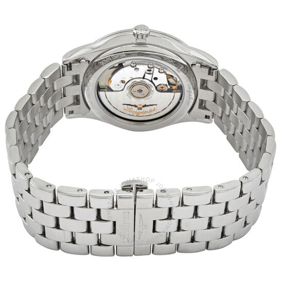 علبة من الفولاذ المقاوم للصدأ مع سوار من الفولاذ المقاوم للصدأ. إطار ثابت من الفولاذ المقاوم للصدأ. ميناء أسود بعقارب فضية اللون وعلامات ساعات من الألماس. نوع الميناء: تناظري. عرض التاريخ عند موضع الساعة الثالثة. حركة لونجين أوتوماتيكية من عيار L888، مبنية على ETA A31.L11، تحتوي على 21 جوهرة، تنبض بتردد 25200 ذبذبة في الساعة، ولديها احتياطي طاقة يدوم حوالي 64 ساعة. زجاج من الياقوت المقاوم للخدش. تاج قابل للسحب/الدفع. غطاء خلفي شفاف. شكل دائري. حجم العلبة: 38.50 مم. عرض السوار: 20 مم. مشبك فراشة. مقاومة للماء حتى عمق 30 مترًا / 100 قدم. الوظائف: التاريخ، الساعة، الدقيقة، الثانية. معلومات إضافية: 13 ماسة من طراز Wesselton VS-SI، بإجمالي وزن 0.059 قيراط. سلسلة Flagship. طراز ساعة رسمية. علامة الساعة: صناعة سويسرية. ساعة لونجين فلاجشيب أوتوماتيكية مرصعة بالألماس للرجال بمينا أسود L4.974.4.57.6.