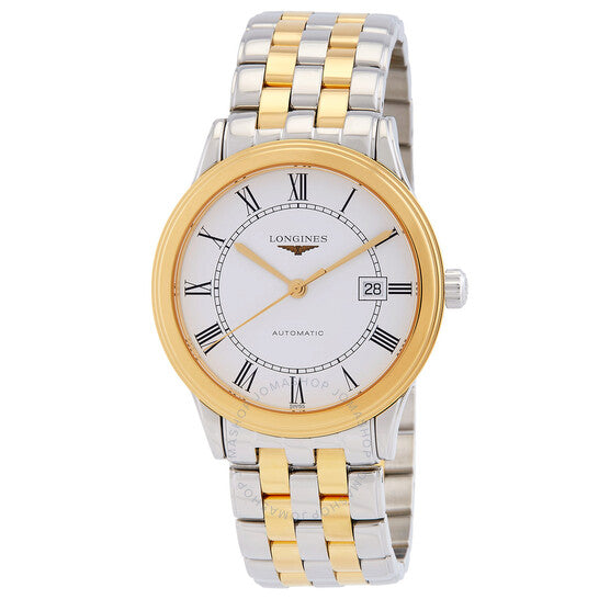 علبة وسوار من الفولاذ المقاوم للصدأ بلونين (فضي وذهبي أصفر مطلي بتقنية PVD). إطار ثابت من الفولاذ المقاوم للصدأ مطلي بتقنية PVD بلون ذهبي أصفر. ميناء أبيض بعقارب ذهبية اللون وعلامات ساعات بأرقام رومانية. مقياس دقائق حول الحافة الداخلية. نوع الميناء: تناظري. عرض التاريخ عند موضع الساعة 3. حركة أوتوماتيكية L888 مع احتياطي طاقة لمدة 72 ساعة. زجاج ياقوت مقاوم للخدش. تاج قابل للسحب/الدفع. شكل العلبة دائري، مقاسها: 40 مم، سمكها: 8.70 مم. عرض السوار: 21 مم. مشبك قابل للطي. مقاومة للماء حتى عمق 30 مترًا / 100 قدم. الوظائف: التاريخ، الساعة، الدقيقة، الثانية. سلسلة فلاجشيب. طراز ساعة رسمية. علامة الساعة: صناعة سويسرية. ساعة لونجين فلاجشيب أوتوماتيكية للرجال بمينا أبيض L49843217.
