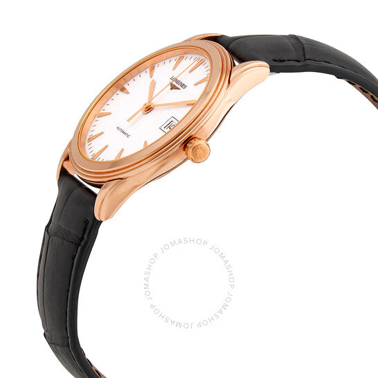 علبة من الذهب الوردي عيار ١٨ قيراطًا مع سوار أسود من جلد التمساح. إطار ثابت من الذهب الوردي عيار ١٨ قيراطًا. ميناء أبيض بعقارب ومؤشرات ساعات بلون الذهب الوردي. مؤشرات دقائق حول الحافة الخارجية. نوع الميناء: تناظري. عرض التاريخ عند موضع الساعة ٣. حركة لونجين أوتوماتيكية من عيار L619، مبنية على ETA 2892-A2، تحتوي على ٢١ جوهرة، تنبض بتردد ٢٨٨٠٠ ذبذبة في الساعة، ولديها احتياطي طاقة يدوم حوالي ٤٢ ساعة. زجاج من الياقوت المقاوم للخدش. تاج قابل للسحب/الدفع. غطاء خلفي شفاف. شكل دائري. حجم العلبة: ٣٥.٥ مم. سمكها: ٨ مم. مشبك تانغ. مقاومة للماء حتى عمق ٣٠ مترًا / ١٠٠ قدم. الوظائف: التاريخ، الساعة، الدقيقة، الثانية. سلسلة فلاجشيب. تصميم ساعة كاجوال. علامة الساعة: صناعة سويسرية. ساعة لونجين فلاجشيب أوتوماتيكية للرجال بمينا أبيض L4.774.8.22.2.