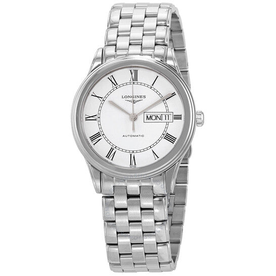 علبة من الفولاذ المقاوم للصدأ مع سوار من الفولاذ المقاوم للصدأ. إطار ثابت من الفولاذ المقاوم للصدأ. ميناء أبيض غير لامع بعقارب فضية اللون وعلامات ساعات رومانية. علامات دقائق حول حلقة داخلية. نوع الميناء: تناظري. عرض يوم الأسبوع والتاريخ عند موضع الساعة 3. حركة لونجين أوتوماتيكية من عيار L636، مبنية على ETA 2836، تحتوي على 25 جوهرة، ولديها احتياطي طاقة لمدة 38 ساعة تقريبًا. زجاج من الياقوت المقاوم للخدش. تاج قابل للسحب/الدفع. غطاء خلفي شفاف. شكل دائري. حجم العلبة: 38.50 مم. سمك العلبة: 8.7 مم. عرض السوار: 20 مم. مشبك قابل للطي بزر ضغط للتحرير. مقاومة للماء حتى عمق 30 مترًا / 100 قدم. الوظائف: التاريخ، اليوم، الساعة، الدقيقة، الثانية. سلسلة فلاجشيب. تصميم ساعة كاجوال. علامة الساعة: صناعة سويسرية. ساعة لونجين فلاجشيب أوتوماتيكية للرجال بمينا أبيض غير لامع L4.899.4.21.6.