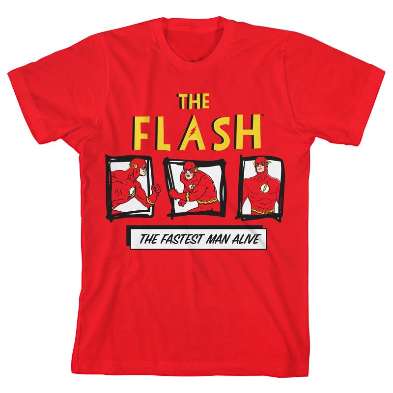- تي شيرت بأكمام قصيرة - يتميز تي شيرت الشباب الأحمر للأولاد بنص The Flash The Fastest Man Alive مع رسومات خربشة بأكمام قصيرة تبدو مريحة في الطقس الدافئ.