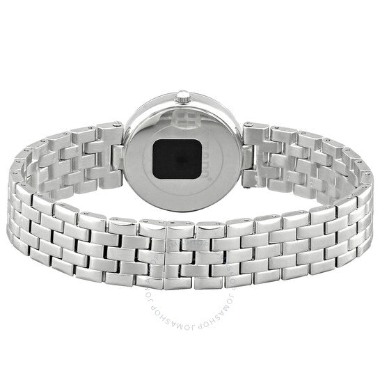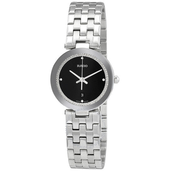 علبة وسوار من الفولاذ المقاوم للصدأ فضي اللون. إطار ثابت من الفولاذ المقاوم للصدأ فضي اللون. ميناء أسود بعقارب فضية اللون. نوع الميناء: تناظري. عرض التاريخ عند موضع الساعة السادسة. حركة كوارتز من رادو كاليبر ١١١. زجاج ياقوت مقاوم للخدش. تاج قابل للسحب/الدفع. غطاء خلفي صلب. شكل دائري، مقاس العلبة: ٢٨ مم. مقاومة للماء حتى عمق ٣٠ مترًا / ١٠٠ قدم. الوظائف: التاريخ، الساعة، الدقيقة، الثانية. سلسلة فلورنس. طراز ساعة رسمية. علامة الساعة: صناعة سويسرية. رقم المنتج: ٠١.١١١.٣٨٧٤.٤.٠١٥. ساعة رادو فلورنس كوارتز نسائية بمينا سوداء، R٤٨٨٧٤١٥٣.