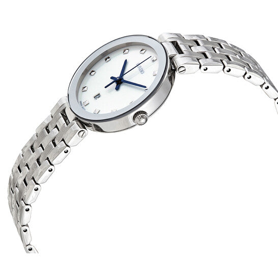 علبة فضية اللون من الفولاذ المقاوم للصدأ مع سوار من الفولاذ المقاوم للصدأ. إطار ثابت. عقارب زرقاء. نوع الميناء: تناظري. عرض التاريخ عند موضع الساعة السادسة. آلية حركة كوارتز. زجاج ياقوت مقاوم للخدش. تاج قابل للسحب/الدفع. شكل العلبة دائري، مقاسها: ٢٨ مم، سُمكها: ٦.٣ مم. مقاومة للماء حتى عمق ٣٠ مترًا / ١٠٠ قدم. الوظائف: التاريخ، الساعة، الدقائق، الثانية. طراز ساعة رسمية. علامة الساعة: صناعة سويسرية. ساعة رادو فلورنس كوارتز نسائية R48874024.