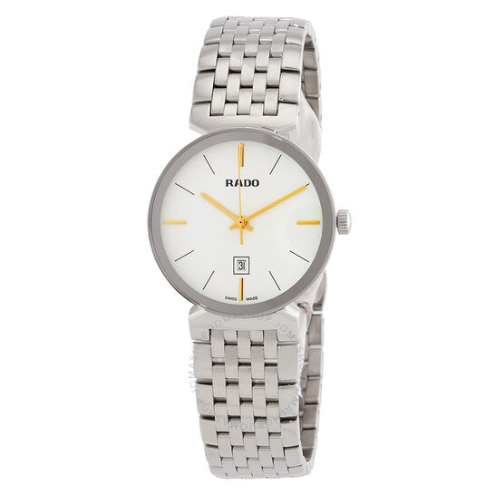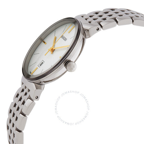 علبة وسوار من الفولاذ المقاوم للصدأ فضي اللون. إطار ثابت من الفولاذ المقاوم للصدأ فضي اللون. ميناء فضي اللون مع عقارب ذهبية اللون وعلامات ساعات. نوع الميناء: تناظري. عرض التاريخ عند موضع الساعة السادسة. حركة كوارتز. زجاج ياقوت مقاوم للخدش. غطاء خلفي صلب. شكل العلبة دائري، مقاسها: 30 مم. مشبك قابل للطي. مقاومة للماء حتى عمق 50 مترًا / 165 قدمًا. الوظائف: التاريخ، الساعة، الدقائق، الثانية. معلومات إضافية: العلبة الأصلية، بطاقة الضمان الدولية، دليل الاستخدام (ملحقات كاملة). سلسلة فلورنس. تصميم ساعة فاخر. علامة الساعة: صناعة سويسرية. ساعة رادو فلورنس كوارتز نسائية بمينا فضي R48913013.