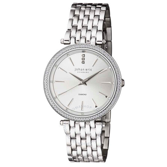 علبة من الفولاذ المقاوم للصدأ مع سوار من الفولاذ المقاوم للصدأ. إطار ثابت من الفولاذ المقاوم للصدأ. ميناء فضي اللون مع عقارب ومؤشرات ساعات فضية اللون. مؤشرات مرصعة بالكريستال عند موضع الساعة ١٢. نوع الميناء: تناظري. حركة كوارتز. زجاج معدني مقاوم للخدش. تاج قابل للسحب/الدفع. غطاء خلفي صلب. شكل دائري. حجم العلبة: ٣٦.٧٥ مم. سمكها: ٧ مم. عرض السوار: ١٨.٣ مم. طول السوار: ٧.٥ بوصة. مشبك قابل للطي. مقاومة للماء حتى عمق ٥٠ مترًا / ١٦٥ قدمًا. الوظائف: الساعات، الدقائق، الثواني. سلسلة فريديريسيا. ساعة كاجوال أنيقة. ساعة يوهان إريك فريديريسيا النسائية بمينا فضي JE-F1000-04-001B.