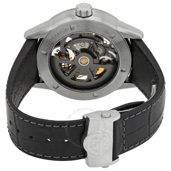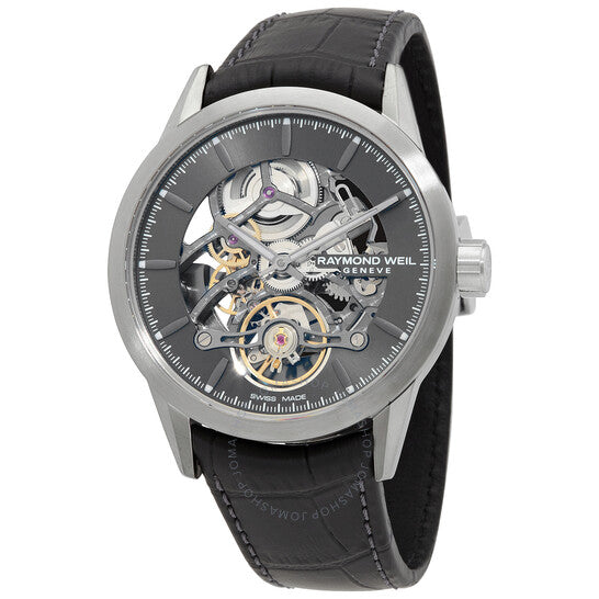 علبة من الفولاذ المقاوم للصدأ مطلية باللون الرمادي مع سوار جلدي أسود. إطار ثابت مطلي باللون الرمادي. ميناء رمادي (هيكلي مركزي) مع عقارب ومؤشرات ساعات فضية مضيئة. مؤشرات دقائق حول الحافة الخارجية. نوع الميناء: تناظري. عقارب ومؤشرات مضيئة. حركة أوتوماتيكية. زجاج ياقوت مقاوم للخدش. غطاء خلفي شفاف. شكل دائري. حجم العلبة: 42 مم. سمكها: 10.6 مم. عرض السوار: 20 مم. مشبك قابل للطي بزر ضغط. مقاومة للماء حتى عمق 100 متر / 330 قدمًا. الوظائف: الساعة، الدقائق. سلسلة فريلانسر 1212. طراز الساعة الرياضية. علامة الساعة: صناعة سويسرية. ساعة ريموند ويل فريلانسر 1212 أوتوماتيكية للرجال بمينا رمادي، 2785-TI1-60001.