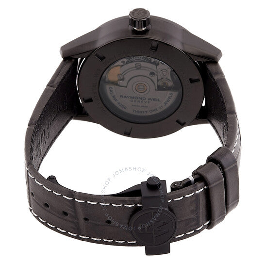 علبة رمادية من الفولاذ المقاوم للصدأ مطلية بتقنية PVD مع سوار جلدي رمادي. إطار ثابت من الفولاذ المقاوم للصدأ مطلي بتقنية PVD رمادي. ميناء أسود بعقارب وعلامات ساعات فضية اللون. علامات دقائق حول الحافة الخارجية. نوع الميناء: تناظري. عقارب وعلامات مضيئة. نافذة تاريخ على شكل نصف قمر. نافذة تاريخ على شكل نصف قمر، موانئ فرعية للثواني الصغيرة. حركة أوتوماتيكية من ريموند ويل كاليبر RW 4250، مبنية على SW200، تحتوي على 31 جوهرة، تنبض بمعدل 28800 ذبذبة في الساعة، ولديها احتياطي طاقة لمدة 38 ساعة تقريبًا. زجاج من الياقوت المقاوم للخدش. تاج لولبي. غطاء خلفي شفاف. شكل دائري، مقاس العلبة: 38 مم، سمك العلبة: 10.01 مم. عرض السوار: 19 مم. قابلة للطي بمشبك مزدوج بنظام أمان بالضغط. مقاومة للماء حتى عمق 100 متر / 330 قدمًا. الوظائف: التاريخ، الساعة، الدقائق، الثواني الصغيرة. سلسلة فريلانسر. طراز ساعة رسمية. علامة الساعة: سويسرية الصنع. ساعة ريموند ويل فريلانسر أوتوماتيكية للسيدات بمينا أسود 2778-BKC-20001.