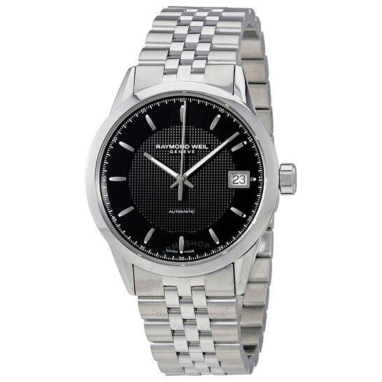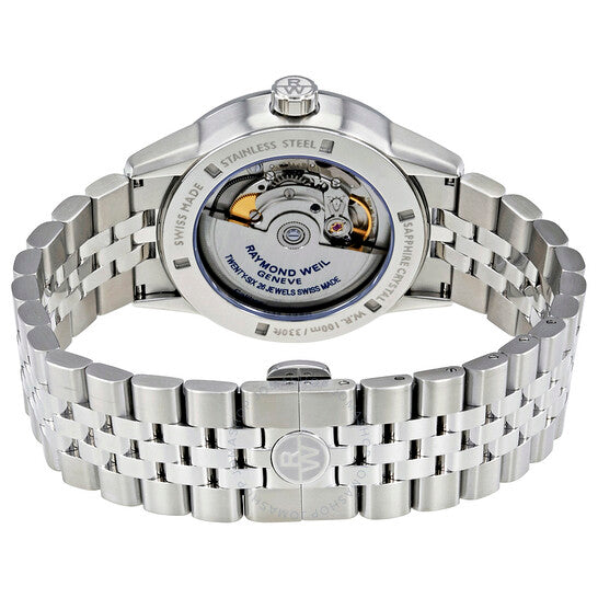 علبة من الفولاذ المقاوم للصدأ مع سوار من الفولاذ المقاوم للصدأ. إطار ثابت من الفولاذ المقاوم للصدأ. ميناء أسود مع عقارب ومؤشرات ساعات فضية مضيئة. مؤشرات دقائق حول الحافة الخارجية. نوع الميناء: تناظري. عقارب ومؤشرات مضيئة. عرض التاريخ عند موضع الساعة 3. حركة أوتوماتيكية مع احتياطي طاقة لمدة 38 ساعة. زجاج ياقوتي مقاوم للخدش. تاج لولبي. غطاء خلفي شفاف. حجم العلبة: 42.5 مم. سمكها: 10.3 مم. شكلها دائري. عرض السوار: 22 مم. مشبك قابل للطي بزر ضغط مزدوج. مقاومة للماء حتى عمق 100 متر / 330 قدمًا. الوظائف: التاريخ، الساعة، الدقائق، الثواني. تصميم ساعة فاخرة. علامة الساعة: صناعة سويسرية. إصدارات الساعة: 2740 ST 20021، 2740.ST.20021، 2740ST20021. ساعة ريموند ويل فريلانسر أوتوماتيكية للرجال بمينا أسود 2740-ST-20021.