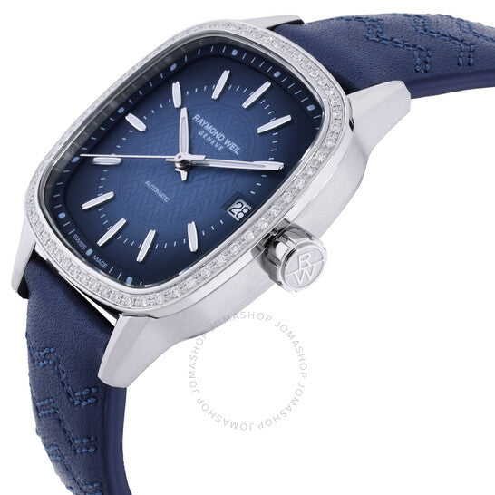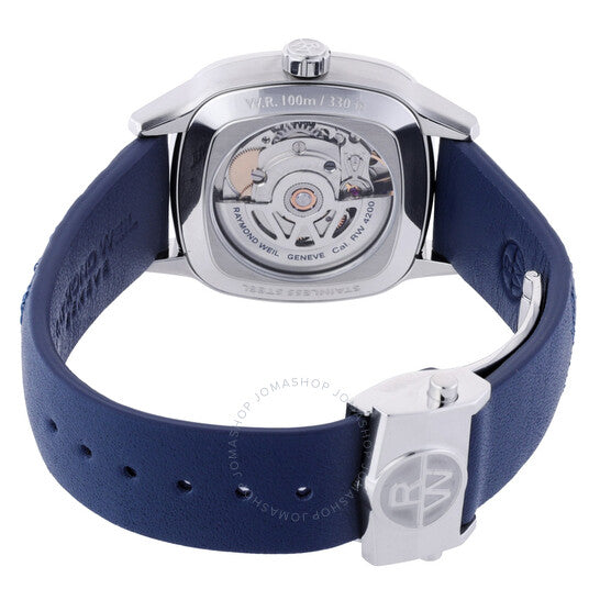 علبة من الفولاذ المقاوم للصدأ فضية اللون مع سوار جلدي أزرق. إطار ثابت فضي اللون مرصع بالألماس. ميناء أزرق متدرج اللون مع عقارب وعلامات ساعات فضية اللون. علامات دقائق حول الحافة الخارجية. نوع الميناء: تناظري. عقارب وعلامات مضيئة. عرض التاريخ عند موضع الساعة 3. حركة ريموند ويل كاليبر RW4200 يدوية التعبئة مع احتياطي طاقة لمدة 38 ساعة. زجاج ياقوت مقاوم للخدش. غطاء خلفي شفاف. شكل العلبة مربع، أبعادها: 34.5 × 34.5 مم، سُمكها: 9.3 مم. مشبك قابل للطي مع مفتاح أمان. مقاومة للماء حتى عمق 100 متر / 330 قدمًا. الوظائف: التاريخ، الساعة، الدقيقة، الثانية. معلومات إضافية: عدد الماسات: 60؛ وزن قيراط الماس: 0.399 قيراط. سلسلة فريلانسر. طراز ساعة رسمية. علامة الساعة: سويسرية الصنع. ساعة ريموند ويل فريلانسر النسائية ذات التعبئة اليدوية والماس 2490-SCS-50051.