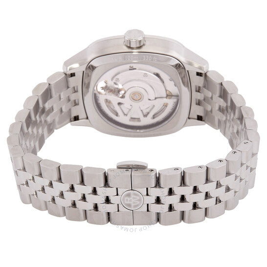 علبة وسوار من الفولاذ المقاوم للصدأ فضي اللون. إطار ثابت من الفولاذ المقاوم للصدأ فضي اللون. ميناء أزرق متدرج مع عقارب وعلامات ساعات فضية اللون. علامات دقائق حول الحافة الخارجية. نوع الميناء: تناظري. حركة أوتوماتيكية من ريموند ويل كاليبر RW1212، تحتوي على 27 جوهرة، تنبض بمعدل 28800 ذبذبة في الساعة، ولديها احتياطي طاقة يدوم حوالي 38 ساعة. زجاج من الياقوت المقاوم للخدش. تاج لولبي. غطاء خلفي شفاف. شكل العلبة مربع، مقاسها: 40 × 40 مم، سمكها: 10.5 مم. مشبك قابل للطي مع مفتاح أمان. مقاومة للماء حتى عمق 100 متر / 330 قدمًا. الوظائف: ساعة، دقيقة. سلسلة فريلانسر. علامة الساعة: صناعة سويسرية. ساعة ريموند ويل فريلانسر أوتوماتيكية للرجال 2790-ST-50051.