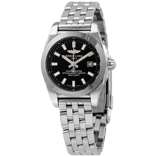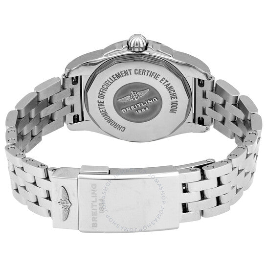 علبة من الفولاذ المقاوم للصدأ مع سوار من الفولاذ المقاوم للصدأ. إطار رمادي ثابت من الفولاذ المقاوم للصدأ. ميناء أسود لامع مع عقارب ومؤشرات ساعات فضية مضيئة. مؤشرات دقائق. مؤشرات جزء من مئة من الثانية حول الحافة الخارجية. نوع الميناء: تناظري. عقارب ومؤشرات مضيئة. عرض التاريخ عند موضع الساعة 3. حركة كوارتز بريتلينغ كاليبر 72. زجاج ياقوت مقاوم للخدش. تاج قابل للسحب/الدفع. غطاء خلفي صلب. شكل دائري. حجم العلبة: 29 مم. سمك العلبة: 8.9 مم. عرض السوار: 14 مم. مشبك قابل للطي. مقاومة للماء حتى عمق 100 متر / 330 قدمًا. الوظائف: التاريخ، الساعة، الدقائق، الثواني. سلسلة جالاكتيك 29. تصميم ساعة فاخرة. علامة الساعة: صناعة سويسرية. ساعة بريتلينغ جالاكتيك 29 كوارتز نسائية W72348121B2A1.