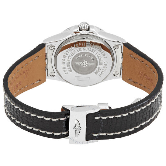 علبة من الفولاذ المقاوم للصدأ فضية اللون مع حزام أسود من جلد السحلية. ميناء أسود بعقارب فضية اللون وعلامات ساعات رومانية. نوع الميناء: تناظري. عقارب وعلامات مضيئة. عرض التاريخ عند موضع الساعة 3. حركة كوارتز. زجاج ياقوتي مقاوم للخدش. غطاء خلفي صلب. شكل العلبة دائري، مقاسها: 30 مم. مشبك تانغ. مقاومة للماء حتى عمق 100 متر / 330 قدمًا. الوظائف: التاريخ، الساعة، الدقيقة، الثانية. سلسلة جالاكتيك 30. اسم الساعة: صناعة سويسرية. ساعة بريتلينغ جالاكتيك 30 كوارتز نسائية بمينا أسود A71340L2/B950.168Z.A14D.1.