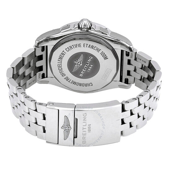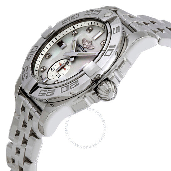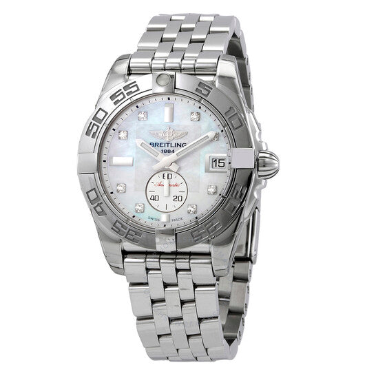 علبة وسوار من الفولاذ المقاوم للصدأ فضي اللون. إطار دوار أحادي الاتجاه من الفولاذ المقاوم للصدأ فضي اللون. ميناء من عرق اللؤلؤ مع عقارب مضيئة فضية اللون وعلامات ساعات من الماس. علامات الفهرس عند الساعة 6 و9 و12. علامات الدقائق حول الحافة الخارجية. نوع الميناء: تناظري. عقارب وعلامات مضيئة. عرض التاريخ عند الساعة 3. ميناء فرعي واحد يعرض: ثانية صغيرة. حركة بريتلينغ كاليبر 37 أوتوماتيكية، مبنية على ETA 2895-2، تحتوي على 27 جوهرة، تنبض بمعدل 28800 ذبذبة في الساعة، ولديها احتياطي طاقة لمدة 42 ساعة تقريبًا. زجاج ياقوت مقاوم للخدش. تاج لولبي. غطاء خلفي صلب. شكل العلبة دائري، مقاس العلبة: 36 مم، سمك العلبة: 12.3 مم. عرض السوار: 18 مم. مشبك قابل للطي مع مفتاح أمان. مقاومة للماء حتى عمق 100 متر / 330 قدمًا. الوظائف: التاريخ، الساعة، الدقيقة، الثانية. سلسلة جالاكتيك 36. تصميم ساعة رسمية. علامة الساعة: صناعة سويسرية. ساعة بريتلينغ جالاكتيك 36 أوتوماتيكية مرصعة بالألماس للسيدات A37330121A1A1.