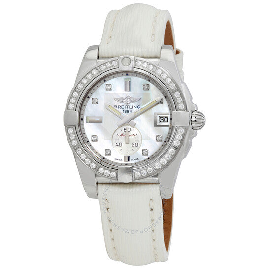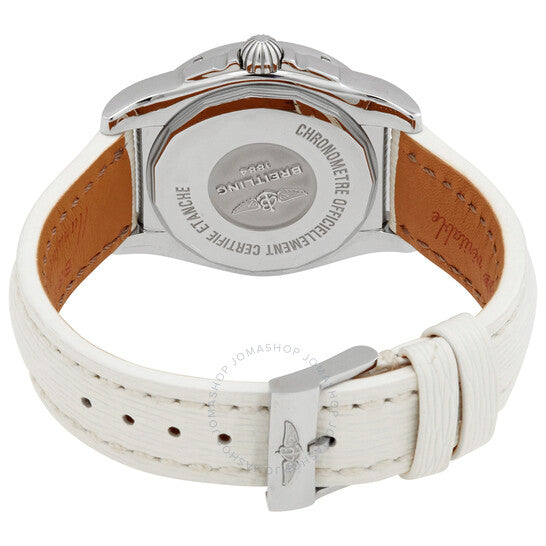علبة من الفولاذ المقاوم للصدأ فضية اللون مع سوار من جلد الصحراء الأبيض. إطار ثابت مرصع بالألماس. ميناء من عرق اللؤلؤ مع عقارب فضية اللون وعلامات ساعات مرصعة بالألماس. نوع الميناء: تناظري. عقارب وعلامات مضيئة. عرض التاريخ عند موضع الساعة 3. ميناء فرعي واحد يعرض: ثانية صغيرة. حركة أوتوماتيكية. زجاج ياقوت مقاوم للخدش. تاج قابل للسحب/الدفع. شكل العلبة دائري، حجمها 36 مم. مقاومة للماء حتى عمق 100 متر / 330 قدمًا. الوظائف: التاريخ، الساعة، الدقائق، الثواني. سلسلة جالاكتيك 36. تصميم ساعة فاخرة. علامة الساعة: صناعة سويسرية. ساعة بريتلينغ جالاكتيك 36 أوتوماتيكية مرصعة بالألماس للسيدات A3733053/A717.236X.A16BA.1.