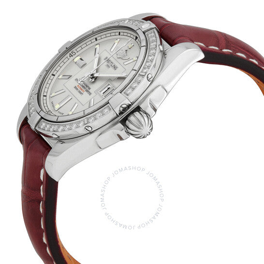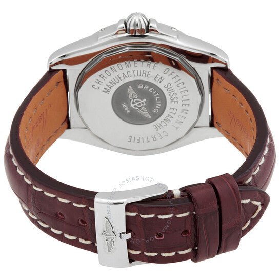 علبة من الفولاذ المقاوم للصدأ فضية اللون مع سوار من جلد التمساح بلون عنابي. إطار ثابت فضي اللون مرصع بالألماس. ميناء فضي اللون مع عقارب وعلامات ساعات فضية اللون. علامات دقائق حول الحافة الخارجية. نوع الميناء: تناظري. عقارب وعلامات مضيئة. عرض التاريخ عند موضع الساعة 3. حركة أوتوماتيكية. كريستال ياقوتي مقاوم للخدش. غطاء خلفي صلب. شكل العلبة دائري، مقاسها: 41 مم. مشبك تانغ. مقاومة للماء حتى عمق 300 متر / 1000 قدم. الوظائف: التاريخ، الساعة، الدقائق، الثواني. سلسلة جالاكتيك 41. تصميم ساعة فاخرة. علامة الساعة: صناعة سويسرية. ساعة بريتلينغ جالاكتيك 41 أوتوماتيكية مرصعة بالألماس للرجال A49350LA/G699.722P.A18BA.1.