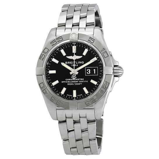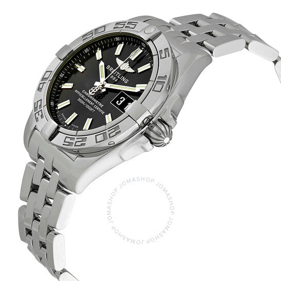 علبة من الفولاذ المقاوم للصدأ مع سوار من الفولاذ المقاوم للصدأ. إطار دوار أحادي الاتجاه من الفولاذ المقاوم للصدأ. ميناء أسود من العقيق مع عقارب ومؤشرات ساعات فضية مضيئة. مؤشرات دقائق. مؤشرات 1/100 من الثانية حول الحافة الخارجية. نوع الميناء: تناظري. عقارب ومؤشرات مضيئة. عرض التاريخ عند موضع الساعة 3. حركة بريتلينغ أوتوماتيكية كاليبر 49 مع احتياطي طاقة لمدة 42 ساعة. زجاج ياقوت مقاوم للخدش. تاج لولبي. غطاء خلفي صلب. شكل دائري. حجم العلبة: 41 مم. سمكها: 14 مم. عرض السوار: 20 مم. مشبك قابل للطي. مقاومة للماء حتى عمق 300 متر / 1000 قدم. الوظائف: تاريخ كبير، ساعات، دقائق، ثوانٍ، كرونومتر. تصميم ساعة فاخرة. علامة الساعة: صناعة سويسرية. ساعة بريتلينغ جالاكتيك كرونومتر أوتوماتيكية للرجال A49350L2-BE58-366A.