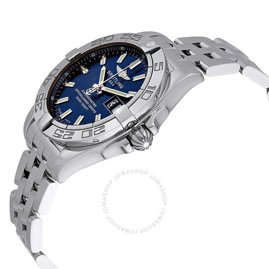 علبة من الفولاذ المقاوم للصدأ مع سوار من الفولاذ المقاوم للصدأ. إطار دوار أحادي الاتجاه من الفولاذ المقاوم للصدأ. ميناء أزرق أفقيّ مع عقارب وعلامات ساعات فضية مضيئة. علامات دقائق. علامات 1/100 من الثانية حول الحافة الخارجية. نوع الميناء: تناظري. عقارب وعلامات مضيئة. عرض التاريخ عند موضع الساعة 3. حركة بريتلينغ أوتوماتيكية كاليبر 49 مع احتياطي طاقة لمدة 42 ساعة. زجاج من الياقوت المقاوم للخدش. تاج مُغلق ببرغي. غطاء خلفي صلب. شكل العلبة دائري، مقاس العلبة: 41 مم، سمكها: 14 مم. عرض السوار: 20 مم. مشبك قابل للطي بزر ضغط. مقاومة للماء حتى عمق 300 متر / 1000 قدم. الوظائف: تاريخ كبير، ساعات، دقائق، ثوانٍ، كرونومتر. تصميم ساعة فاخرة. علامة الساعة: صناعة سويسرية. ساعة بريتلينغ جالاكتيك كرونومتر أوتوماتيكية للرجال A49350L2/C929-366A.