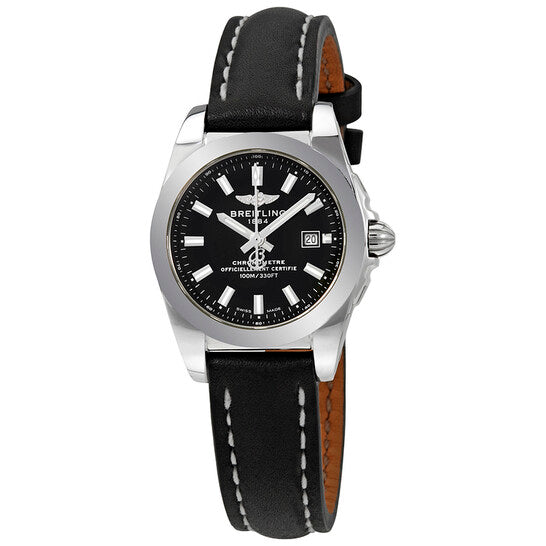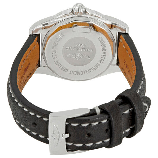 علبة من الفولاذ المقاوم للصدأ مع سوار جلدي أسود. إطار ثابت من الفولاذ المقاوم للصدأ. ميناء أسود بعقارب ومؤشرات ساعات فضية مضيئة. مؤشرات دقائق. مؤشرات جزء من مئة من الثانية حول الحافة الخارجية. نوع الميناء: تناظري. عقارب ومؤشرات مضيئة. عرض التاريخ عند موضع الساعة 3. حركة كوارتز. زجاج ياقوت مقاوم للخدش. تاج قابل للسحب/الدفع. غطاء خلفي صلب. شكل دائري. حجم العلبة: 29 مم. سمكها: 8.9 مم. عرض السوار: 14 مم. مشبك تانغ. مقاومة للماء حتى عمق 100 متر / 330 قدمًا. الوظائف: التاريخ، الساعة، الدقائق، الثانية. تصميم ساعة فاخرة. علامة الساعة: صناعة سويسرية. ساعة بريتلينغ جالاكتيك النسائية بمينا أسود W7234812/BE49-477X.