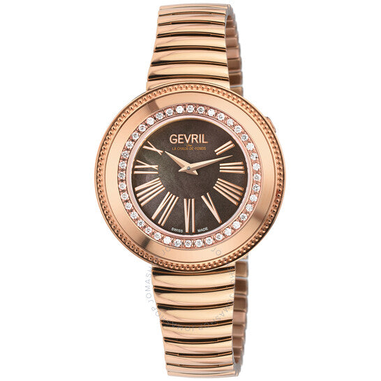 علبة وسوار من الفولاذ المقاوم للصدأ بلون الذهب الوردي. إطار ثابت من الفولاذ المقاوم للصدأ بلون الذهب الوردي. ميناء من عرق اللؤلؤ مع عقارب بلون الذهب الوردي وعلامات ساعات بأرقام رومانية. نوع الميناء: تناظري. حركة كوارتز روندا كاليبر 769. زجاج ياقوت مقاوم للخدش. تاج قابل للسحب/الدفع. غطاء خلفي صلب. شكل دائري، مقاس العلبة: 36 مم، سمكها: 7.5 مم. عرض السوار: 16 مم. مشبك قابل للطي بزر ضغط. مقاومة للماء حتى عمق 50 مترًا / 165 قدمًا. الوظائف: الساعات، الدقائق. سلسلة غاندريا. تصميم ساعة فاخرة. علامة الساعة: صناعة سويسرية. ساعة جيفريل غاندريا النسائية بمينا من عرق اللؤلؤ 12152B.