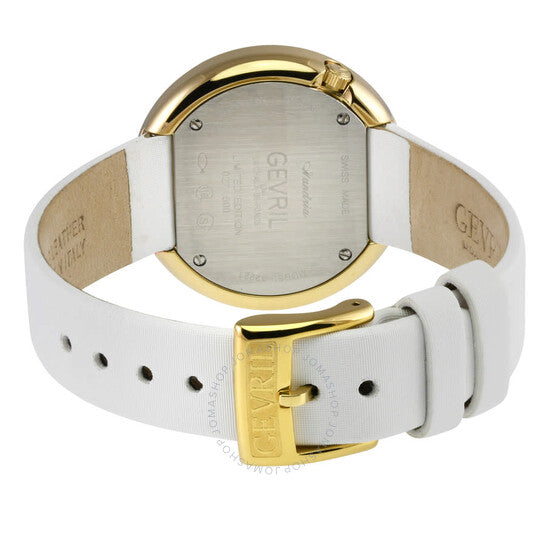علبة من الفولاذ المقاوم للصدأ بلون الذهب الأصفر مع سوار من الجلد الأبيض. إطار ثابت من الفولاذ المقاوم للصدأ بلون الذهب الأصفر. ميناء من عرق اللؤلؤ مع عقارب بلون الذهب الأصفر وعلامات ساعات بأرقام رومانية. نوع الميناء: تناظري. حركة كوارتز روندا كاليبر 762. زجاج ياقوت مقاوم للخدش. تاج قابل للسحب/الدفع. غطاء خلفي صلب. شكل دائري، مقاس العلبة: 36 مم، سمكها: 7.5 مم. عرض السوار: 16 مم. مشبك بإبزيم. مقاومة للماء حتى عمق 50 مترًا / 165 قدمًا. الوظائف: الساعات، الدقائق. معلومات إضافية: 108 ماسات مصقولة على العلبة الخارجية. سلسلة غاندريا. تصميم ساعة فاخرة. علامة الساعة: صناعة سويسرية. ساعة جيفريل غاندريا النسائية بمينا من عرق اللؤلؤ 12221.