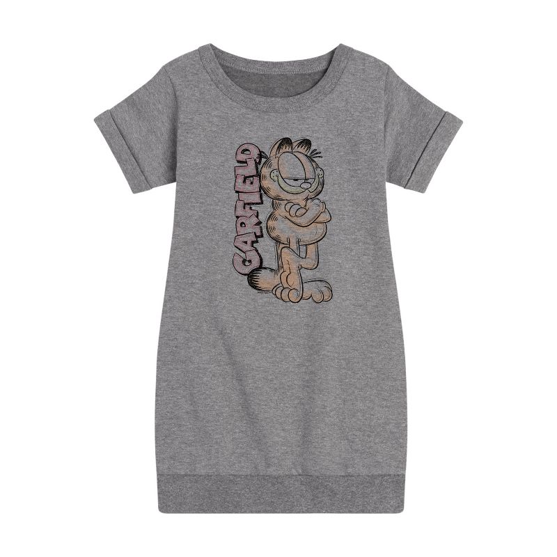 فستان غارفيلد الصوفي بشعار عمودي - للبنات الصغيرات والشابات - أضفِ لمسةً من الفكاهة والكسل إلى خزانة ملابسك مع ملابس غارفيلد الجرافيكية. تتميز هذه التصاميم بشخصيات غارفيلد وأودي وجون، وتحتفل بالقصص المصورة الشهيرة وشخصياتها المحبوبة.