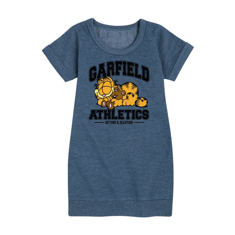 غارفيلد - ملابس رياضية للنوم - فستان صوف للبنات الصغيرات والشابات - أضفِ لمسةً من الفكاهة والكسل إلى خزانة ملابسك مع ملابس غارفيلد الجرافيكية. تتميز هذه التصاميم بغارفيلد وأودي وجون، وتحتفل بالقصص المصورة الشهيرة وشخصياتها المحبوبة.