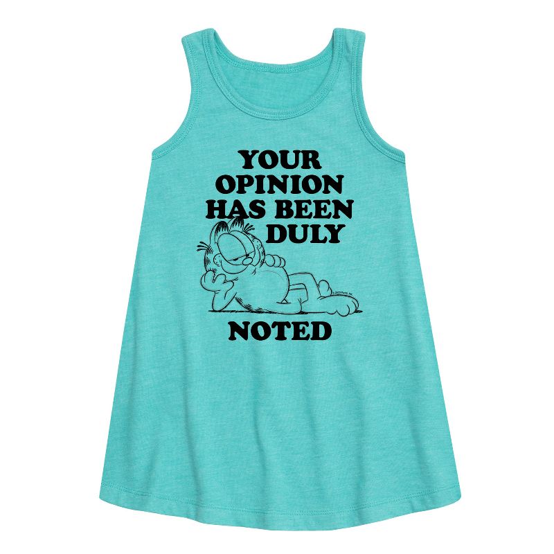 غارفيلد - رأيك مُقدّر - فستان بقصة حرف A للفتيات الصغيرات والشابات - أضفِ لمسةً من الفكاهة والكسل إلى خزانة ملابسك مع ملابس غارفيلد الجرافيكية. تُجسّد هذه التصاميم غارفيلد وأودي وجون، وتُحتفي بالقصص المصورة الشهيرة وشخصياتها المحبوبة.