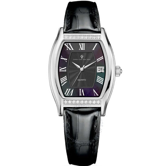 علبة من الفولاذ المقاوم للصدأ فضية اللون مع سوار جلدي أسود. إطار ثابت من الفولاذ المقاوم للصدأ فضي اللون. ميناء أسود بعقارب فضية اللون وعلامات ساعات بأرقام رومانية. نوع الميناء: تناظري. عرض التاريخ عند موضع الساعة 3. آلية حركة كوارتز. زجاج معدني مقاوم للخدش. هيكل مربع الشكل، مقاس العلبة: 34 مم، سمكها: 10 مم. عرض السوار: 14 مم، طوله: 7.5 بوصة. مشبك بإبزيم. مقاومة للماء حتى عمق 3 أمتار / 10 أقدام. الوظائف: التاريخ، الساعات، الدقائق، الثواني. سلسلة جيما. ساعة أنيقة. ساعة كريستيان فان سانت جيما كوارتز نسائية بمينا سوداء CV2440.