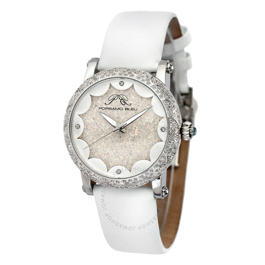 علبة من الفولاذ المقاوم للصدأ مع سوار جلدي أبيض. إطار ثابت من الفولاذ المقاوم للصدأ مرصع بكريستالات التوباز. ميناء أبيض بعقارب فضية مضيئة. كريستالات التوباز مرصعة عند الساعة 3، 6، 9، و12. نوع الميناء: تناظري. عقارب مضيئة. حركة كوارتز ميوتا 203A. كريستال معدني مقاوم للخدش. تاج قابل للسحب/الدفع. غطاء خلفي صلب. شكل دائري. حجم العلبة: 38 مم. سمكها: 8 مم. عرض السوار: 14 مم. مشبك فراشة. مقاومة للماء حتى عمق 50 مترًا / 165 قدمًا. الوظائف: الساعات، الدقائق، الثواني. معلومات إضافية: علامات ساعات وإطار من أحجار التوباز الطبيعية الأصلية. سلسلة جينيفيف. تصميم ساعة فاخر. ساعة بورسامو بلو جينيفيف كوارتز نسائية بمينا بيضاء 681AGEL.
