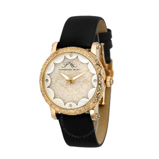 ساعة بورسامو بلو جينيفيف النسائية بهيكل من الفولاذ المقاوم للصدأ وحزام من الجلد الأصلي مطلي بالساتان الأسود؛ ميناء من الكريستال الطبيعي المسحوق مع أحجار كريمة من التوباز الأبيض؛ هيكل من الفولاذ المقاوم للصدأ باللون الذهبي والأسود مع حزام من الجلد الأسود. إطار دوار أحادي الاتجاه من الفولاذ المقاوم للصدأ باللون الذهبي الأصفر. ميناء أبيض مع عقارب وعلامات ساعات ذهبية صفراء. نوع الميناء: تناظري. عقارب وعلامات مضيئة. حركة كوارتز ميوتا كاليبر 203A. كريستال معدني مقاوم للخدش. تاج قابل للسحب/الدفع. ظهر صلب للهيكل. شكل دائري، حجم الهيكل: 38 مم، سمك الهيكل: 12 مم. عرض السوار: 20 مم، طول السوار: 7 بوصات. مشبك قابل للطي مع مفتاح أمان. مقاومة للماء حتى عمق 50 مترًا / 165 قدمًا. الوظائف: الساعة، الدقائق. معلومات إضافية: ميناء من الكريستال الطبيعي المسحوق مع أحجار كريمة من التوباز الأبيض. سلسلة جينيفيف. طراز ساعة فاخرة. علامة الساعة: Japan Movement. ساعة بورسامو بلو جينيفيف كوارتز بمينا أبيض للسيدات 681BGEL.
