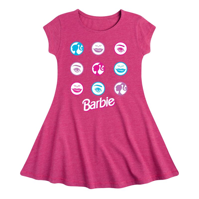 باربي - أيقونات أصلية بشبكة دائرية - فستان ضيق وواسع للفتيات الصغيرات والشابات - انطلقي إلى عالم باربي الوردي الساحر مع ملابسنا الرسومية المرخصة رسميًا لعشاق الموضة! سواء كنتِ تحلمين بأن تصبحي مصممة أزياء، أو أميرة حورية بحر، أو مستكشفة عالمية، فإن ملابسنا تُضفي حيوية على عالم باربي بألوانها الزاهية وطبعاتها المرحة. مصنوعة من مواد عالية الجودة مع عناية فائقة بالتفاصيل، تضمن كل قطعة الراحة والمتانة للعب طوال اليوم. عبّري عن ذوقكِ الفريد وخيالكِ مع ملابس باربي الرسومية الحصرية لدينا!