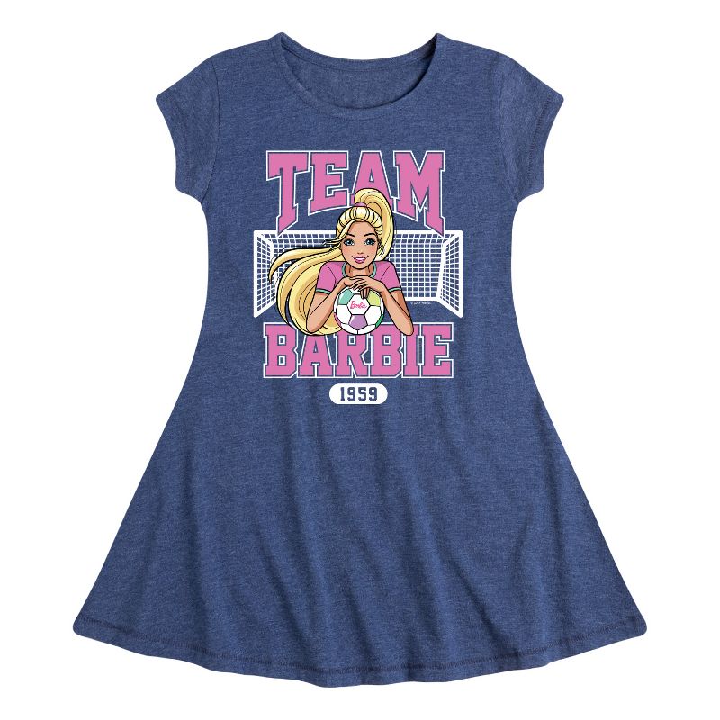 فستان فريق باربي لكرة القدم - فستان قصير بأكمام واسعة من الأمام وواسع من الأسفل - انطلقي إلى عالم باربي الوردي الساحر مع ملابسنا المرخصة رسميًا والمُصممة برسومات جذابة لعاشقات الموضة! سواء كنتِ تحلمين بأن تصبحي مصممة أزياء، أو أميرة حورية بحر، أو مستكشفة عالمية، فإن ملابسنا تُضفي على عالم باربي حيوية بألوانها الزاهية وطبعاتها المرحة. مصنوعة من مواد عالية الجودة مع عناية فائقة بالتفاصيل، تضمن كل قطعة الراحة والمتانة للعب طوال اليوم. عبّري عن ذوقكِ الفريد وخيالكِ مع ملابس باربي المرسومة الحصرية!