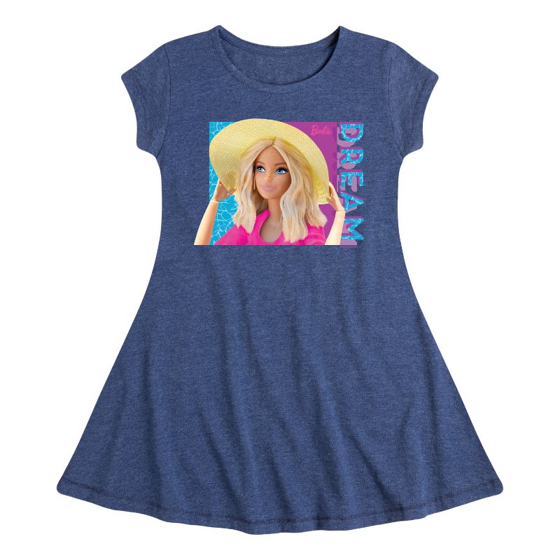 باربي - حلم الصيف - قبعة شاطئ - فستان قصير وواسع من الأسفل للفتيات الصغيرات والشابات - انطلقي إلى عالم باربي الوردي الساحر مع ملابسنا المرخصة رسميًا والمُصممة خصيصًا لعشاق الموضة! سواء كنتِ تحلمين بأن تصبحي مصممة أزياء، أو أميرة حورية بحر، أو مستكشفة عالمية، فإن ملابسنا تُضفي حيوية على عالم باربي بألوانها الزاهية وطبعاتها المرحة. مصنوعة من مواد عالية الجودة مع عناية فائقة بالتفاصيل، تضمن كل قطعة الراحة والمتانة للعب طوال اليوم. عبّري عن ذوقكِ الفريد وخيالكِ مع ملابس باربي المرسومة الحصرية!